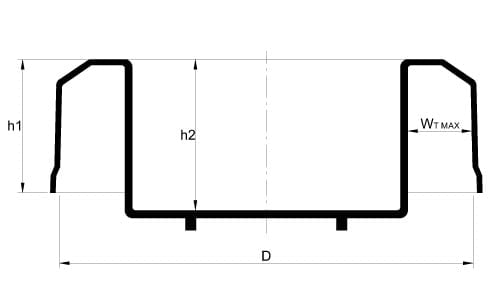 | Pipe DN | Nom. | maksymalna grubość ściany (mm) | D (mm) | h (mm) | h1 (mm) | ||